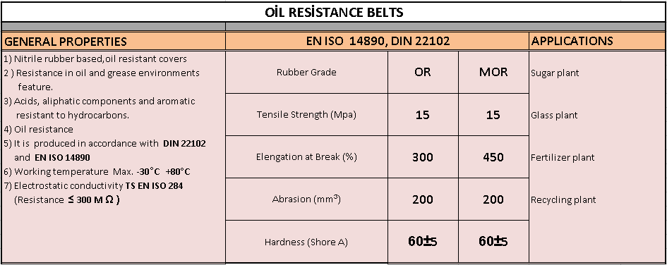 In terms of design, the belt dimensions, belt elements and dimensional tolerances, rubber-fabric ply joints and strength parameters, our belts comply with ISO 14890 standard.